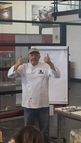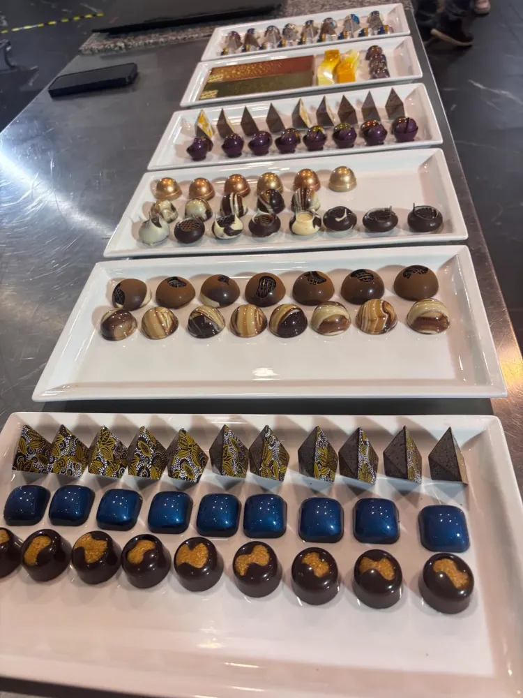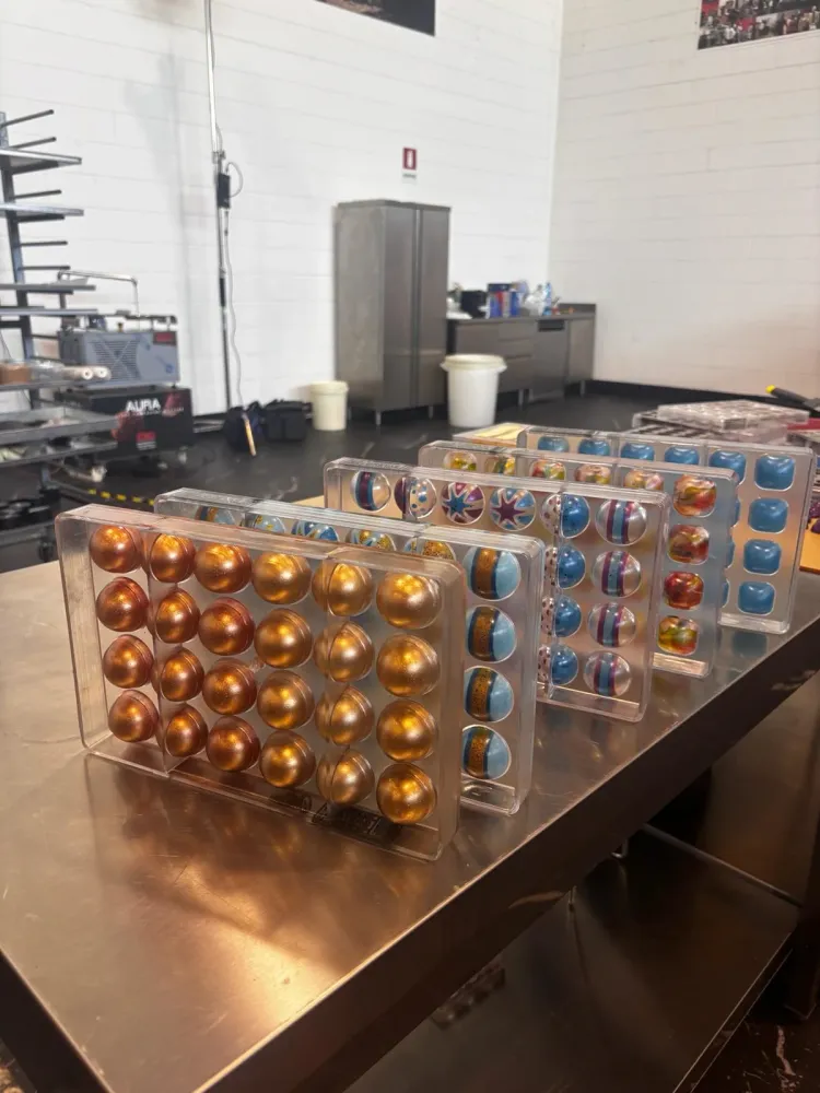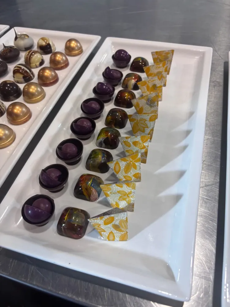 Luis (@luisamado777) ovládol prvú polovicu týždňa svojimi kurzami Avant-garde Pralines. Jeho energia je doslova nákazlivá. Ukázal nám, že pralinka nie je len sladkosť, ale umelecké dielo, kde sa moderný dizajn stretáva s nečakanými chuťovými kombináciami. Jeho prístup k estetike a technike striekania foriem posúva hranice súčasnej čokoládovni.