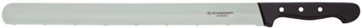 Cukrársky nož s jemným zúbkovaním od spoločnosti SCHNEIDER vyrobený z chróm-molybdénovej ocele. Ergonomicky tvarovaná rukoväť z POM s 3 nitmi z nehrdzavejúcej ocele. Šírka čepele je 24 mm.