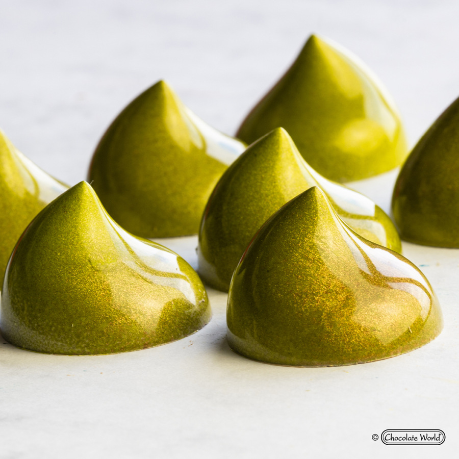 Polykarbonátové formy od spoločnosti CHOCOLATE WORLD vyrobené zo 100% polykarbonátu, veľmi pevný a ľahký potravinársky nezávadný plast. Vhodné na použitie od 5°C do 80°C. Formy sú ISO certifikované.