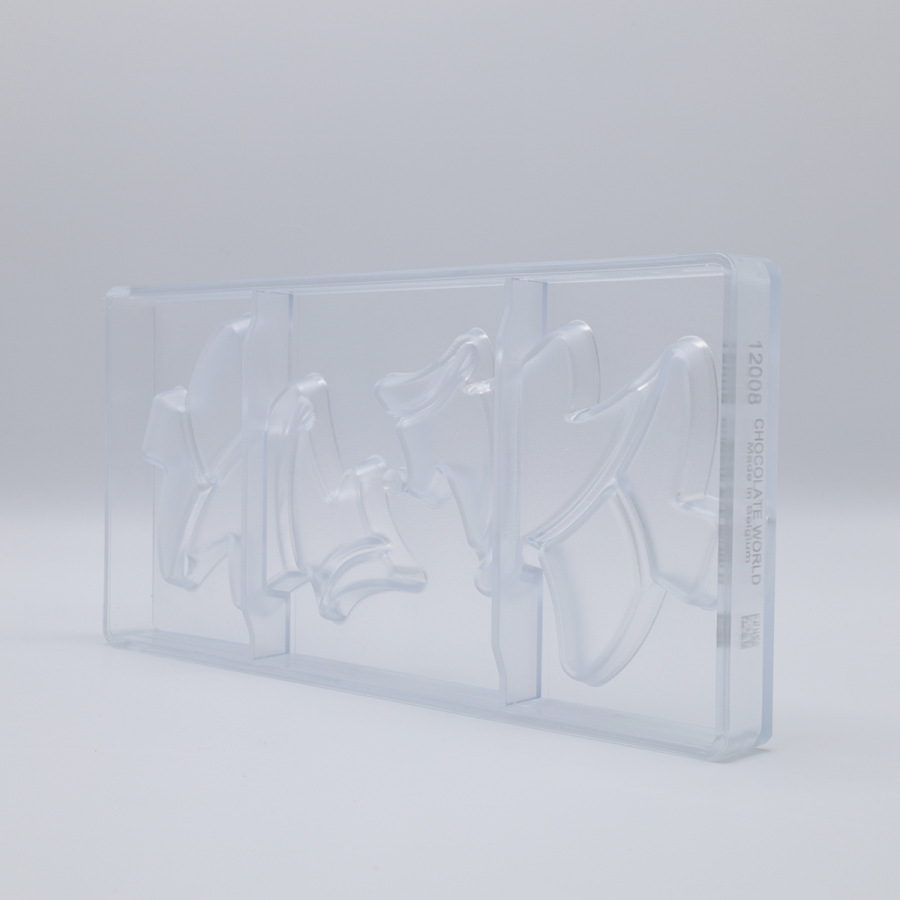 Polykarbonátové formy od spoločnosti CHOCOLATE WORLD vyrobené zo 100% polykarbonátu, veľmi pevný a ľahký potravinársky nezávadný plast. Vhodné na použitie od 5°C do 80°C. Formy sú ISO certifikované.