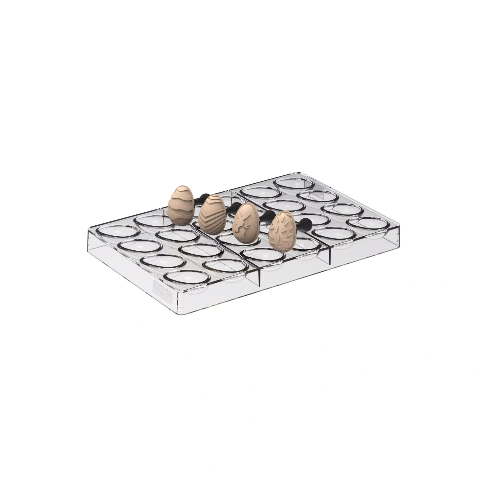 Sada Uovo 01, tritánová forma so 4 pečiatkami na čokoládové vajíčka – SILIKOMART