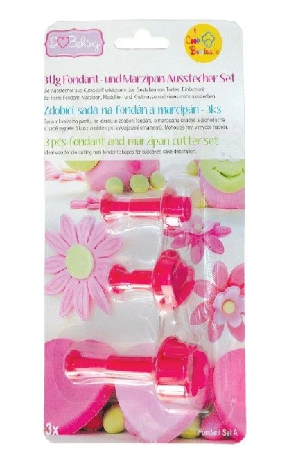 Sada vykrajovacích foriem z kvalitného plastu, s ktorou je zdobenie fondánu a marcipánu ľahké a predovšetkým jednoduché. V sade nájdete 3 kusy formičiek.