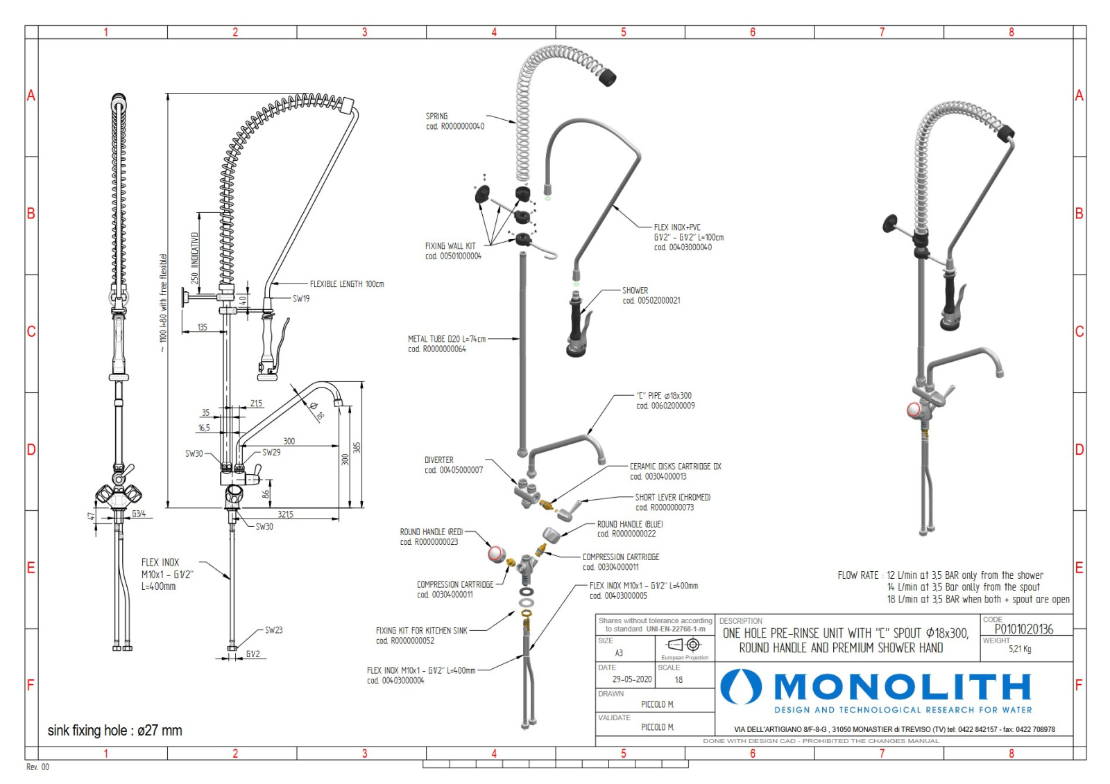 Stojanková tlaková sprcha ERA, ramienko s kohútikom od spoločnosti MONOLITH ideálna pre umývacie stoly. Pripojenie na teplú a studenú vodu, montáž do stola (drezu).